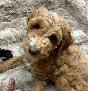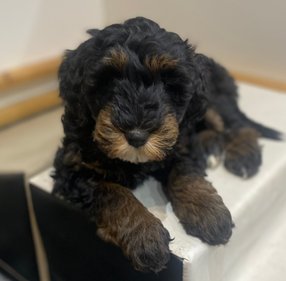 Inka, die Kleinste im Wurf mit nur 3kg. Sie hat die Gene von den beiden Mini-Großvätern geerbt und wird ein Mini bleiben. Eine wunderschöne phantom Maus mit einem herrlichen runden Kopf. Inka ist mir sehr an Herz gewachsen und zeigt einerseits eine hohe Dynamik, anderseits sucht sie intensiv den Kontakt zu mir, besonders wenn es drum geht einzuschlafen. Sie kann sehr unabhängig vom Rudel ihr eigenes Ding machen, lässt sich aber trotz ihrer kleinen Größe nicht Butter vom Brot nehmen. Manchmal reizüberflutet, kommt aber aus dieser Welle raus wenn sie auf den Arm kommt. Inka zieht zu Evi, bleibt im Saarland. Evi hat sich seit etlicher Zeit sehnlich gewünscht ein 2. Labradoodle Abenteuer zu beginnen. Ich war echt hin und her gerissen wo Inka dann jetzt einziehen sollte. Sie hat so was Spezielles…eine „charmeuse“ und dann auch mal übertrieben wuselig. Und nach längerem Gespräch mit Evi und wie sie den verstorbenen Labradoodle betreut hat, war der Groschen dann bei mir gefallen. Ein Mensch im reiferen Alter, mit viel Einfühlsamkeit, Geduld und auch Erfahrung. Inka behält ihren Namen. Goodbye "Oberschatzi" du fehlst hier einem ganz besonders...